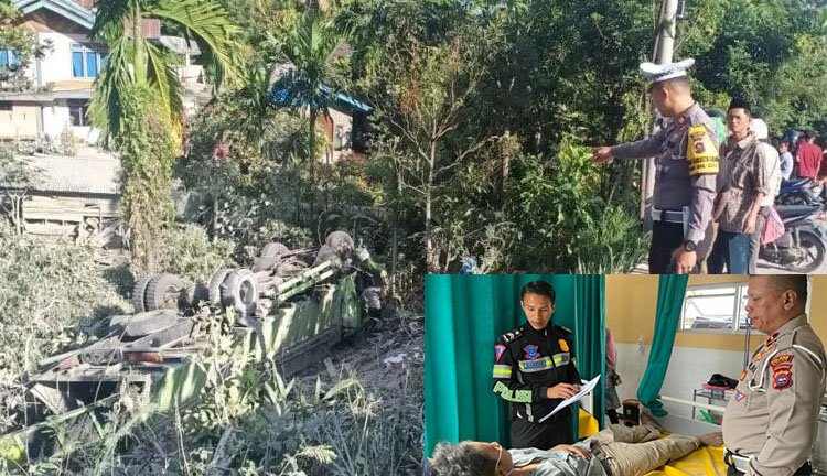 “Truk mengalami rem blong, dan kemudian melebar ke kanan. Pengemudi membanting stir ke kiri, sehingga mobil terbalik dan terseret hingga masuk jurang sedalam lebih kurang 10 meter,” kata Iptu Rido.