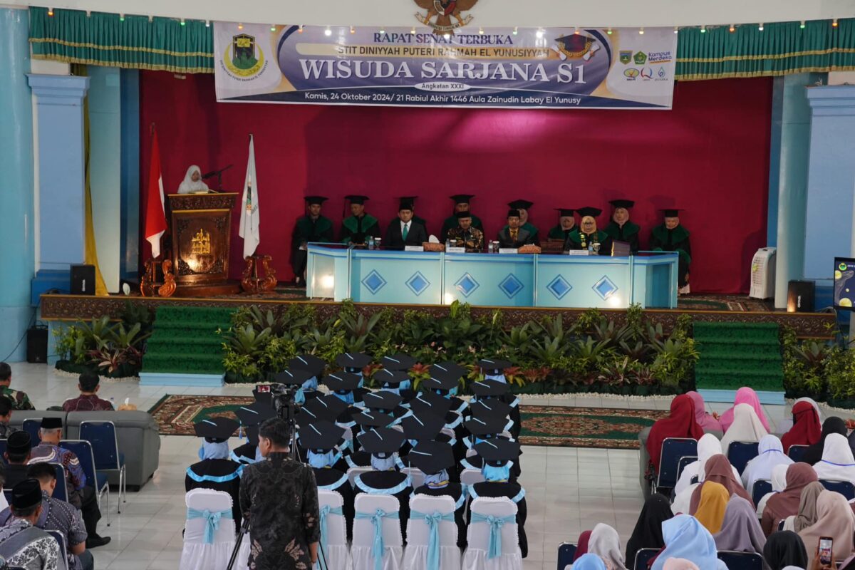 PADANG PANJANG, METRO–Sekolah Tinggi Ilmu Tarbiyah (STIT) Diniyyah Puteri Rahmah El Yunusiyyah Kota Padang Panjang gelar Wisuda Sarjana di Gedung Pertemuan Zainuddin Labay El Yunusy, Kamis (24/10). Sebanyak 26 mahasiswi berhasil lulus dan berhak menyandang gelar Sarjana Pendidikan. Wisudawati tersebut terdiri dari lulusan Strata 1 Program Pendidikan Agama Islam (PAI) sebanyak 15 orang dan Program Pendidikan Islam Anak Usia Dini sebanyak 11 orang angkatan XXXI tahun ajaran 2023/2024.