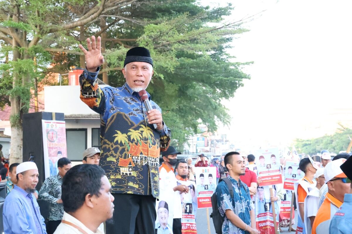 Payakumbuh – Calon Gubernur Sumatera Barat, Mahyeldi turut serta dalam aksi flashmob di Pasar Payakumbuh tepatnya di sekitar Tugu Adipura, Sabtu (26/10/2024).
