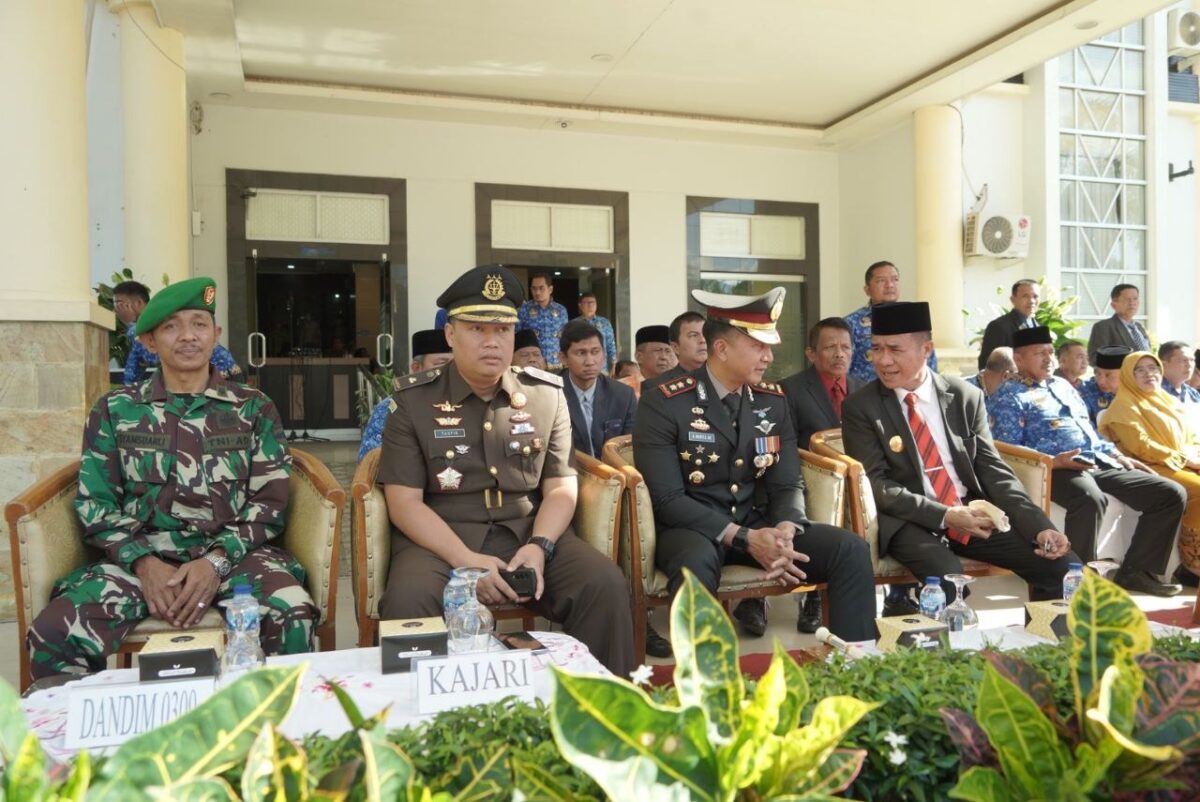 PADANG ARO, METRO— Pemerintah Kabupaten Solok Selatan menggelar Upacara Peringatan Hari Sumpah Pemuda ke-96. Pjs. Bupati Solok Selatan Adib Alfikri bertindak sebagai Inspektur Upacara. Upacara dilaksanakan di Halaman Kantor Bupati Solok Selatan, pada Senin (28/10/2024). Turut dihadiri oleh jajaran Forkopimda Solok Selatan. Diikuti oleh seluruh ASN di Lingkungan Pemerintah Kabupaten, siswa SD, SMP, dan SMA serta mahasiswa perguruan tinggi di Solok Selatan.