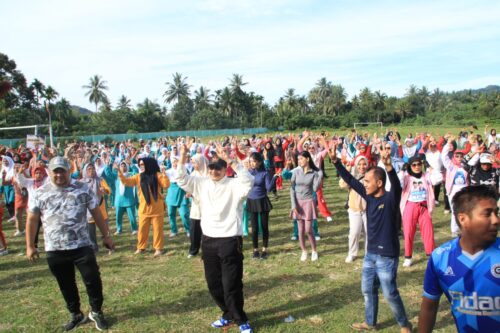 Senam dua jari yang digelar perdana di Kecamatan Bayang ini juga menarik minat warga dengan menyediakan ratusan hadiah doorprize untuk peserta, menambah semarak suasana. (rio)