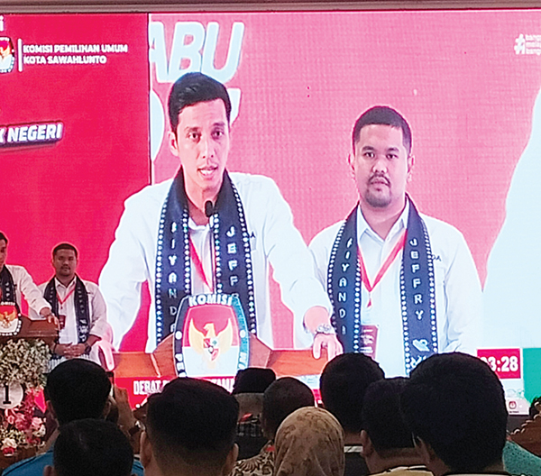 SAWAHLUNTO, METRO–Pasangan calon (Paslon) nomor urut satu, Riyanda-Jeffry, berhasil menggugah perhatian publik dalam Debat Publik yang digelar oleh KPU Sawahlunto pada Rabu (30/10) malam di BDTBT.