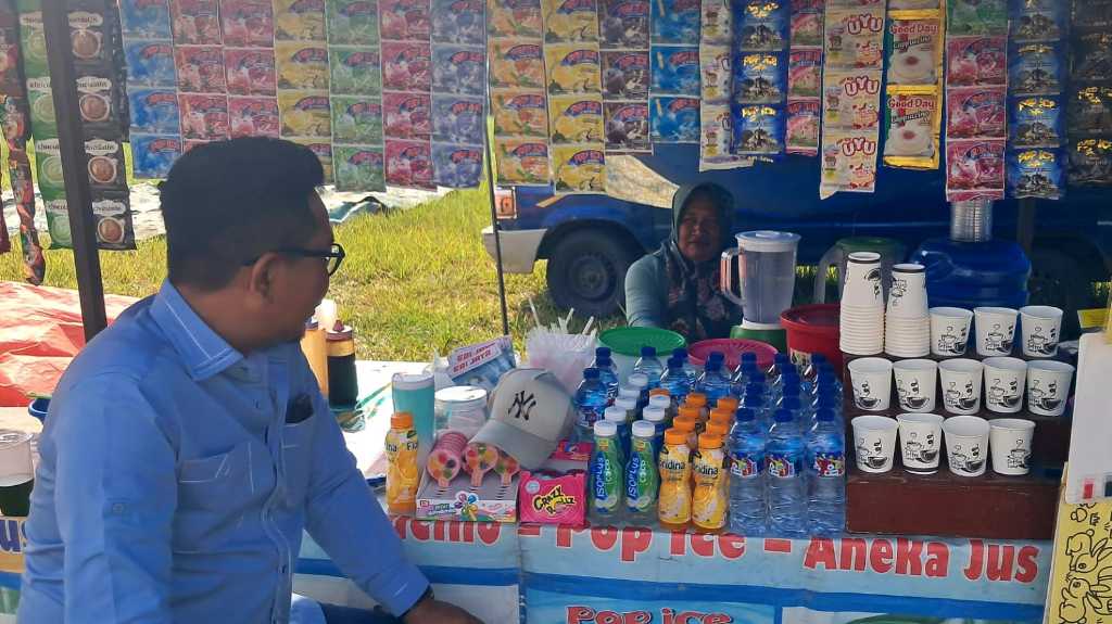 Sri mengatakan, dirinya berjualan berbagai minuman dan menggelar dagangannya tak jauh di samping pentas konser. Ia mengaku sudah berjualan seperti ini sudah 20 tahun lamanya dari satu titik ke titik lain.