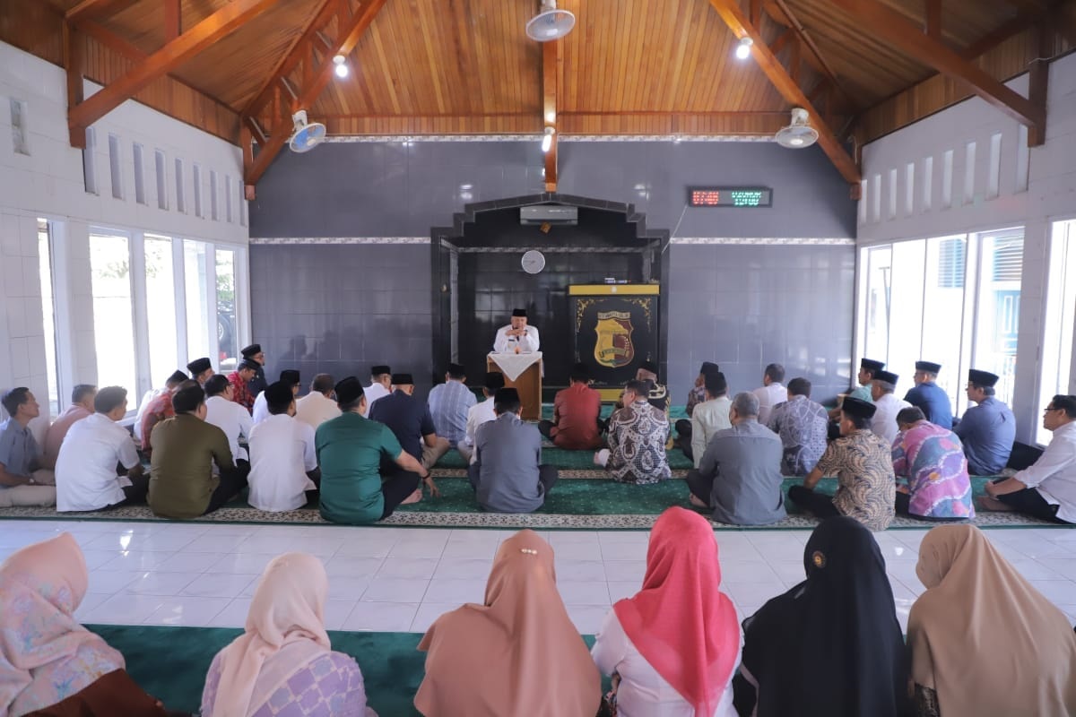 SOLOK KOTA–Wali Kota Solok H. Zul Elfian Umar berikan tausiyah singkat kepada ASN Lingkup Balaikota, bertempat di Mushalla Balaikota Solok, Jumat (1/11).