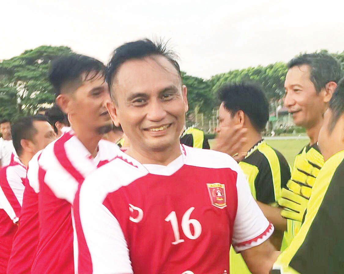 PERTANDINGAN PERSAHABATAN— Pjs Bupati Agam, Endrizal mengikuti pertandingan sepakbola persahabatan antara tim Pemkab Agam dan tim DPRD Agam, di GOR Rang Agam, Lubuk Basung, pada Senin (4/11).