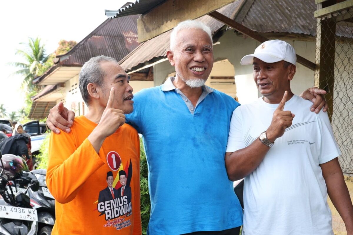 Pariaman – Sebelum memulai aktivitas kampanye, Calon Gubernur Sumatera Barat, Mahyeldi meluangkan waktu untuk berolahraga bersama warga di Lapangan Futsal Jati, Kota Pariaman, Jumat (8/11/2024).