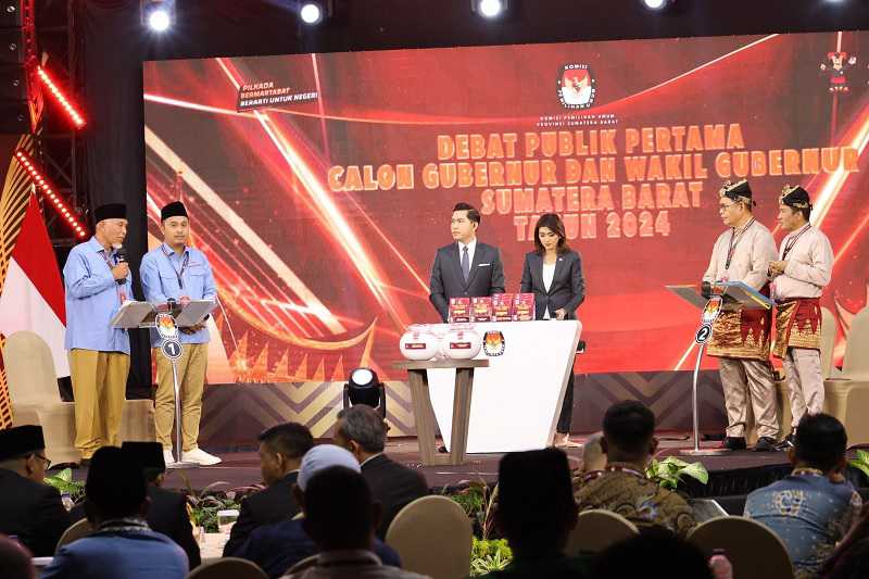 Hal tersebut disampaikan Mahyeldi-Vasko dalam debat perdana Pemilihan Gubernur (Pilgub) Sumatera Barat (Sumbar) yang dilaksanakan di Mercure Hotel Padang, Rabu (13/11/2024) malam.