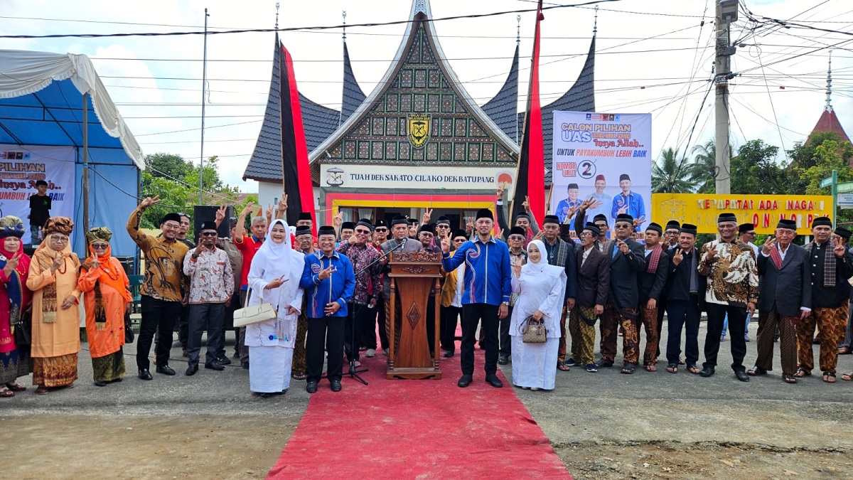 “Terima kasih atas dukungan yang diberikan kepada kami. Kami sungguh terharu dengan pernyataan dukungan yang dibacakan Bapak Dt. Asa Rajo didampingi Bapak Ketua KAN Dt. Penghulu Rajo Nan Hitam, niniak mamak, bundo kanduang, unsur pemuda dan masyaraakat, serta Partai Pendukung,” ujar Al­mai­syar dalam sambutannya.
