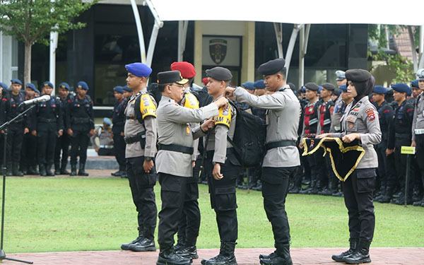 PERGESERAN PASUKAN— Kapolda Sumbar Irjen Pol Suharyono memimpin apel pergeseran pasukan dalam rangka pengamanan TPS pada Pilkada serentak tahun 2024.