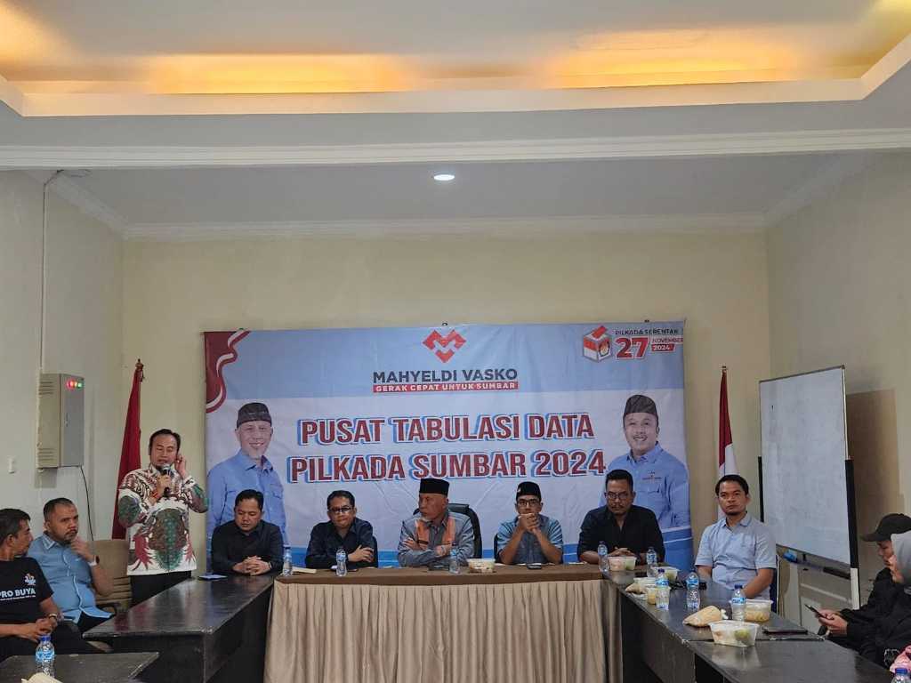 Padang – Pasangan Calon Nomor Urut 1 Mahyeldi-Vasko dipastikan unggul dalam Pilkada Gubernur (Pilgub) Sumatera Barat (Sumbar) 2024 berdasarkan hasil penghitungan suara internal.