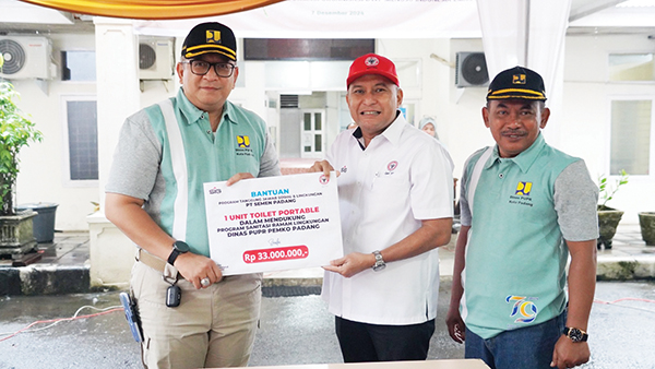 “Kami menyerahkan bantuan ini sebagai bentuk kepedulian PT Semen Pa­dang terhadap pentingnya sanitasi yang layak di Kota Padang. Semoga, toilet portable ini dapat mendukung Program Sanitasi Ramah Lingkungan yang tengah digalakkan oleh Pemko Padang,” ujar Oktoweri.