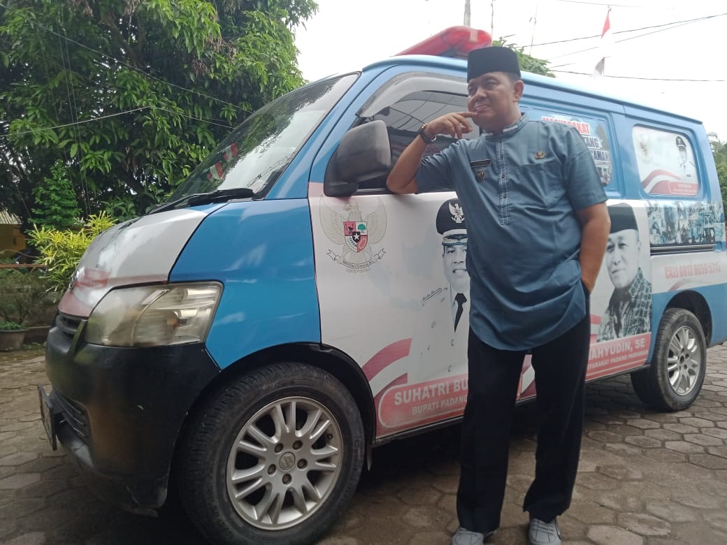 AMBULANS GRATIS— Wali Nagari Parit Malintang Sudirman, dengan Ambulans yang siap melayani warga secara gratis.