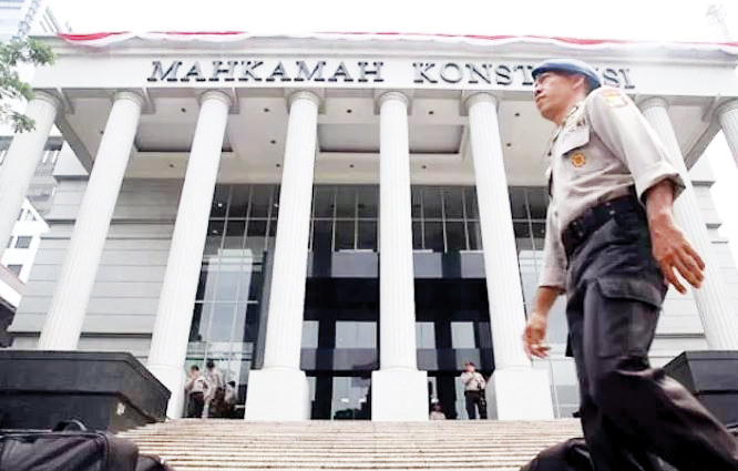 ILUSTRASI— Polisi berjaga di depan Gedung MK.