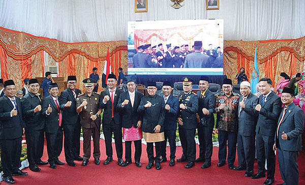 PIMPINAN berserta anggota DPRD Pasbar foto bersama usai pelaksanaan Sidang Paripurna HUT Pasbar yang ke-21.