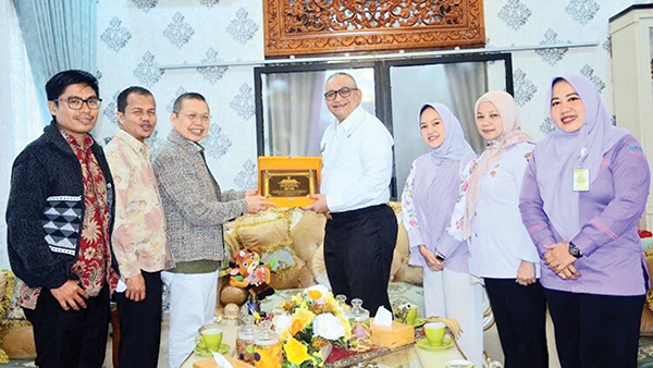 SILATURAHMI— Pj Wali Kota didampingi Kepala DKK Sri Kurniayati saat audiensidan silaturahmi dengan Pemilik RSKM Padang Eye Center dr. Heksan, Sp.M. KV, di kediaman resmi wali kota, Rabu (8/1).