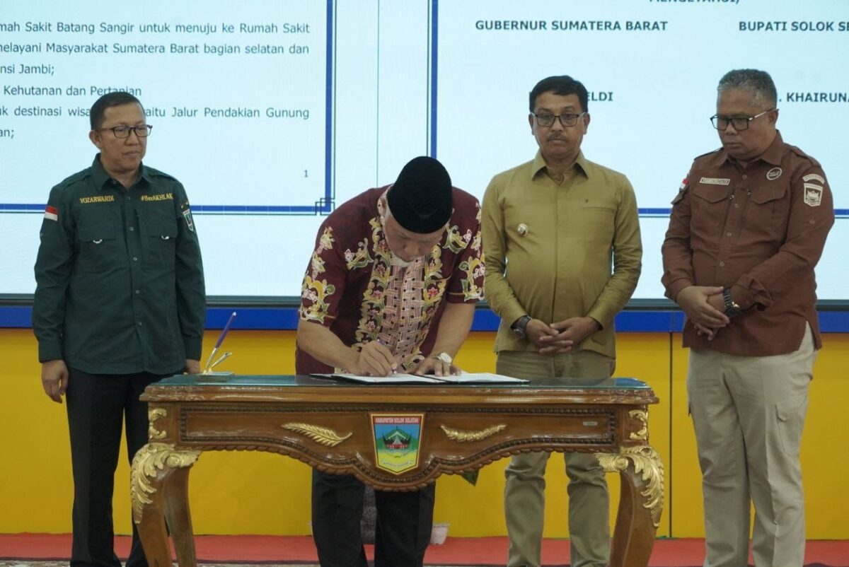PADANG ARO, METRO–Pemerintah Kabupaten Solok Selatan dan Pemerintah Provinsi Sumatera Barat menyepakati kolaborasi konkret penyelenggaraan urusan secara bersama. Kolaborasi ini dilakukan dalam rangka pengembangan Sumatera Barat Bagian Selatan.