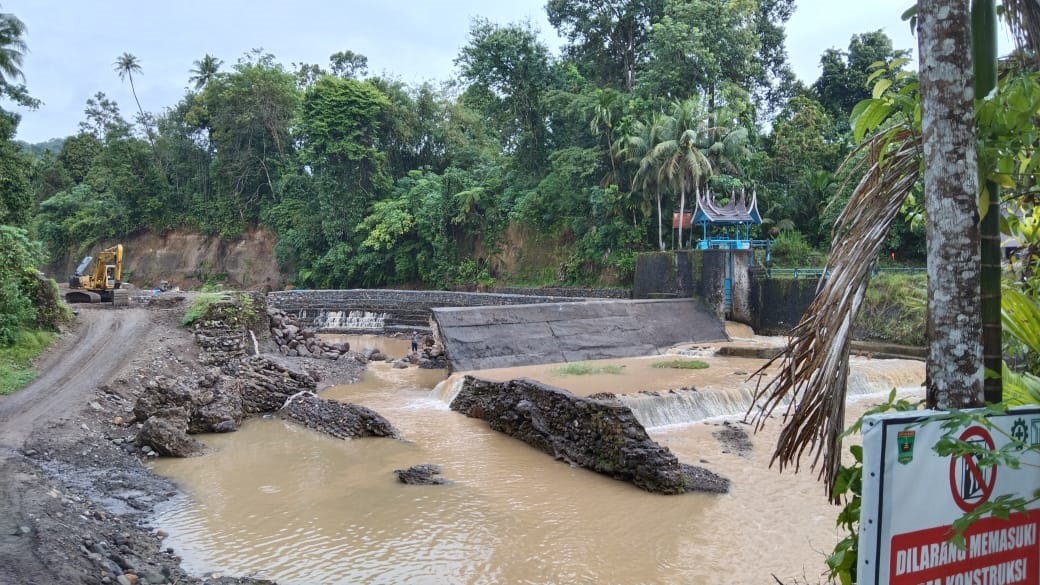 RUSAK—Kondisi kerusakan bendungan Lubuak Sikoci di Nagari Sicincin, Kecamatan 2 X 11 Enam Lingkung , Kabupaten Padangpariaman.