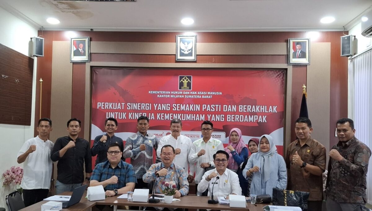 Kepala Kanwil Kemenkumham Sumbar, Dr. Alpius Saramaha, S.H., M.H., langsung menerima rombongan DPRD Agam, didampingi Kepala Divisi Peraturan Perundang-undangan dan Pembinaan Hukum, Dr. Hendra Kurnia Putra, S.H., M.H., serta tim perancang peraturan perundang-undangan, Boby Musliadi, dan perwakilan dari Biro Organisasi Provinsi Sumatera Barat.