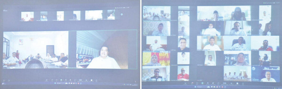 ZOOM MEETING— Bupati Agam Benni Warlis memimpin rapat perdana dengan seluruh OPD Pemkab Agam secara zoom metting di ruang rapat Bupati Agam, Rabu (26/2).