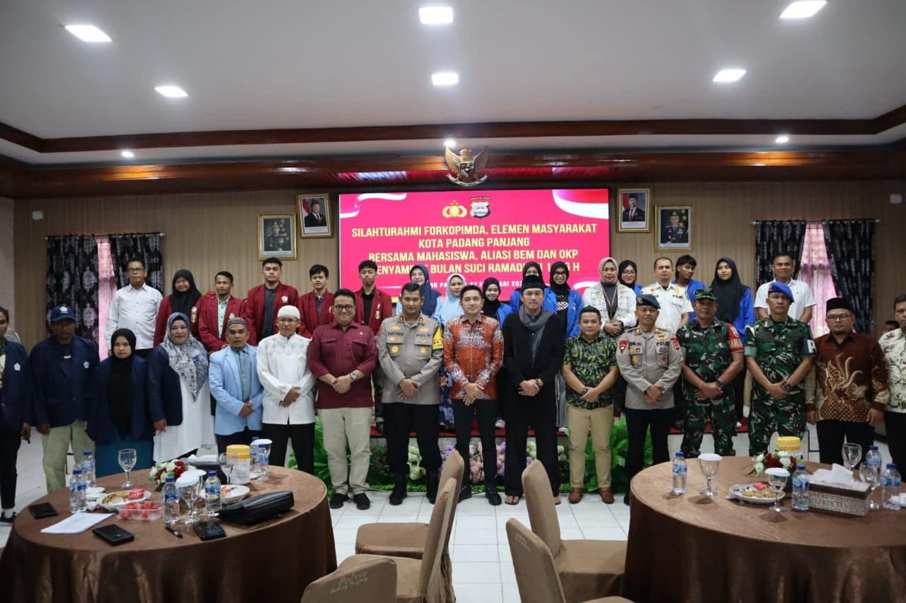PDG. PANJANG, METRO–Sambut bulan suci Ramadhan 1446 Hijriah, Polres Padang Panjang gelar acara silaturahmi bersama Forum Koordinasi Pimpinan Daerah (Forkopimda), elemen masyarakat, mahasiswa, serta organisasi kemasyarakatan dan pemuda (OKP), Jumat (28/2). Kegiatan yang berlangsung di Aula Tathya Dharaka Polres ini bertujuan mempererat sinergi serta menciptakan situasi yang kondusif menjelang dan selama Ramadhan.