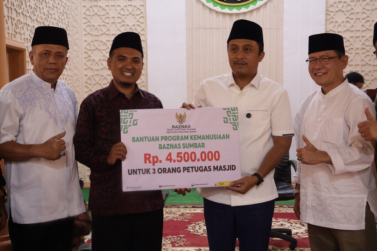 Dalam kesempatan tersebut, Pemerintah Provinsi Sumatera Barat menyerahkan bantuan sebesar Rp50 juta untuk pengembangan masjid, sementara Badan Amil Zakat Nasional (Baznas) Provinsi Sumatera Barat turut memberikan bantuan senilai Rp 4,5 juta. Bantuan ini diharapkan dapat mendukung berbagai kegiatan keagamaan dan pembangunan fasilitas masjid.