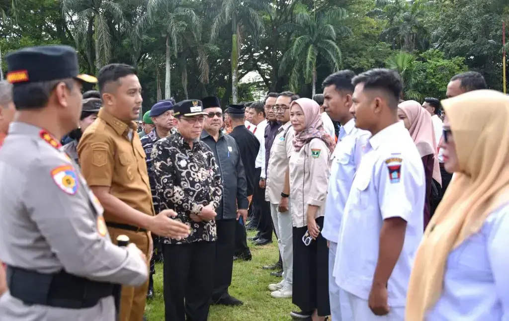 Hadir mendampingi Wawako Padang dalam kesempatan ini, Kasat Pol PP Candra Eka Putra, Kadis Damkar Budi Payan, Kadishub Ances Kurniawan, Kakan Kesbangpol Tarmizi Ismail, dan Kalaksa BPBD Hendri Zulviton. (brm)