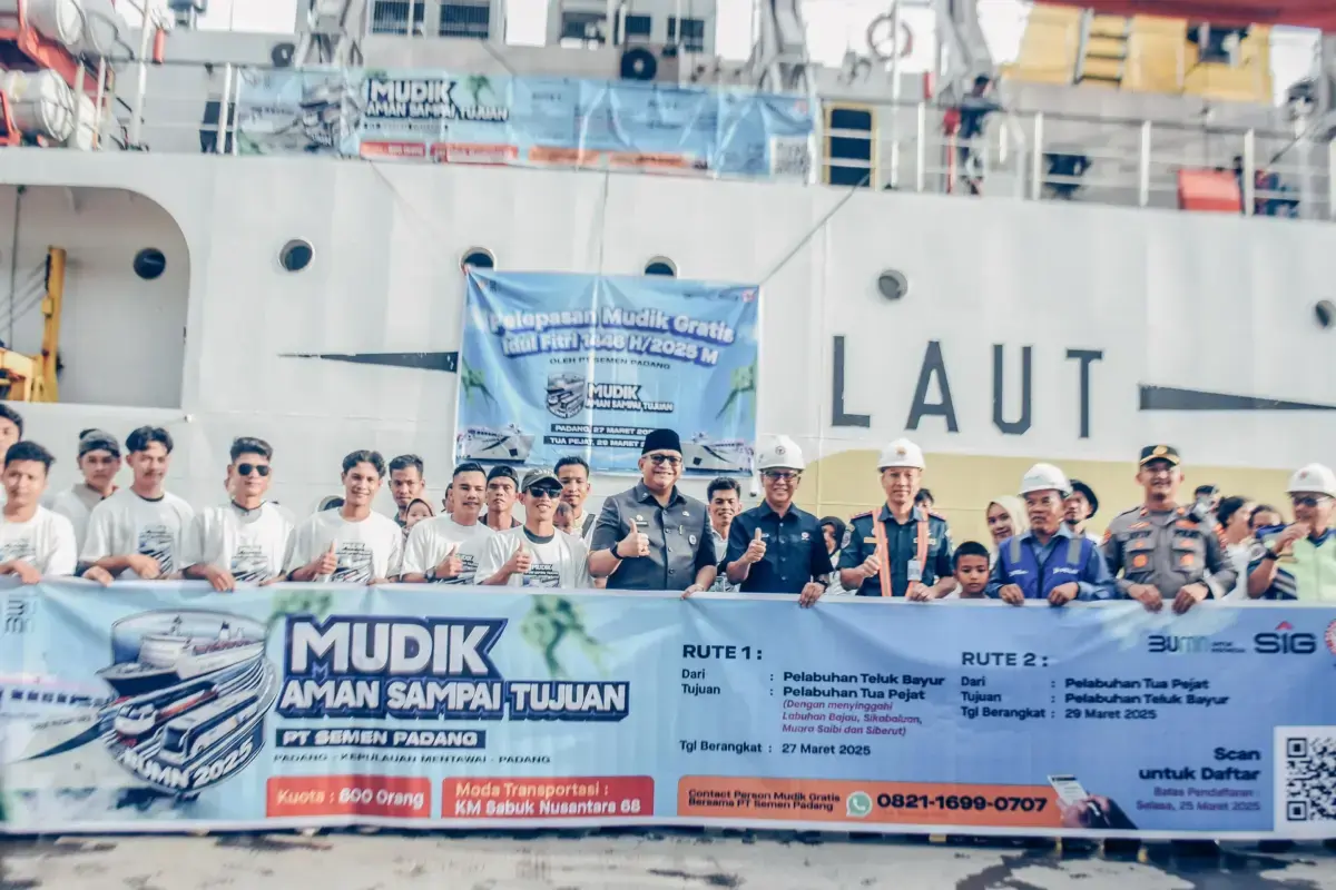 PADANG, METRO–PT Semen Padang kembali menunjukkan komitmennya dalam melayani masyarakat melalui program Mudik Gratis BUMN 2025, yang kali ini diselenggarakan bekerja sama dengan PT Pelayaran Nasional Indonesia (PELNI). Program ini memberangkatkan ratusan pemudik dari Padang menuju Kepulauan Mentawai dan sebaliknya, menggunakan KM Perintis Sabuk Nusantara 68.