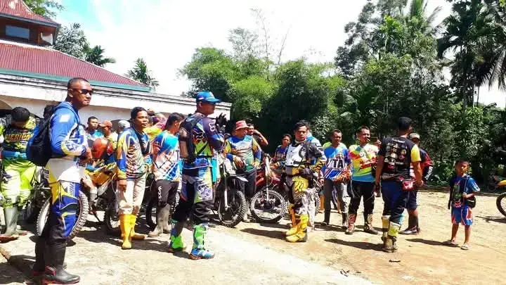 KOMUNITAS MOTOR TRAIL— Wabup Pessel, Dr. H. Risnaldi Ibrahim, yang juga menjabat sebagai Ketua Trail Adventure Sumatera Barat, turun langsung menunggangi motor trail bersama komunitas Linggo Trail di Kecamatan Linggo Sari Baganti, Minggu (6/4).