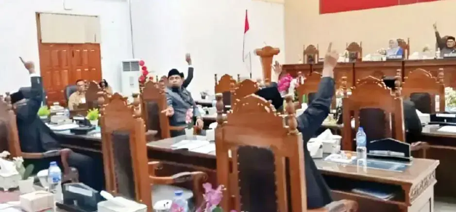 PEMBAHASAN PERDA— Anggota DPRD Sawahlunto mengambil keputusan secara voting dalam rapat paripurna pembahasan perda.