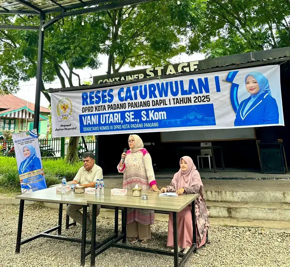 PDG. PANJANG, METRO–Memastikan program kerja Pemerintah Kota (Pemko) Padangpanjang di Dapil l terimplementasi dengan baik, Komisi IIIDPRD Kota Padangpanjang Vani Utari menggelar Reses Catur Wulan l di Kedai Sarapan Pagi Aie Badarun, Minggu (20/4).