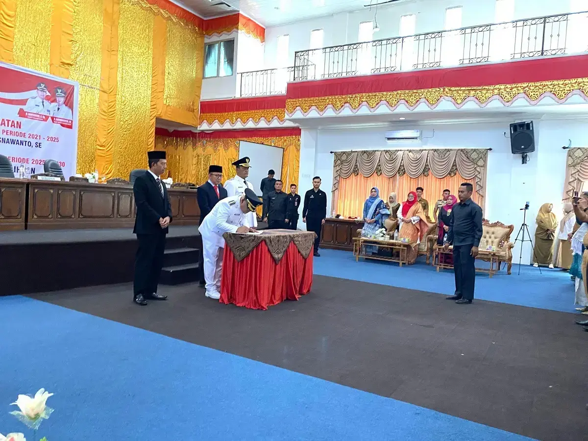 PASBAR, METRO–Pemerintah Kabupaten Pasaman Barat (Pasbar) melaksanakan Serah Terima Jabatan (Sertijab) Bupati dan Wakil Bupati Pasaman Barat periode 2021–2025 kepada Bupati dan Wakil Bupati periode 2025–2030 di aula kantor bupati setempat, Senin (21/4).