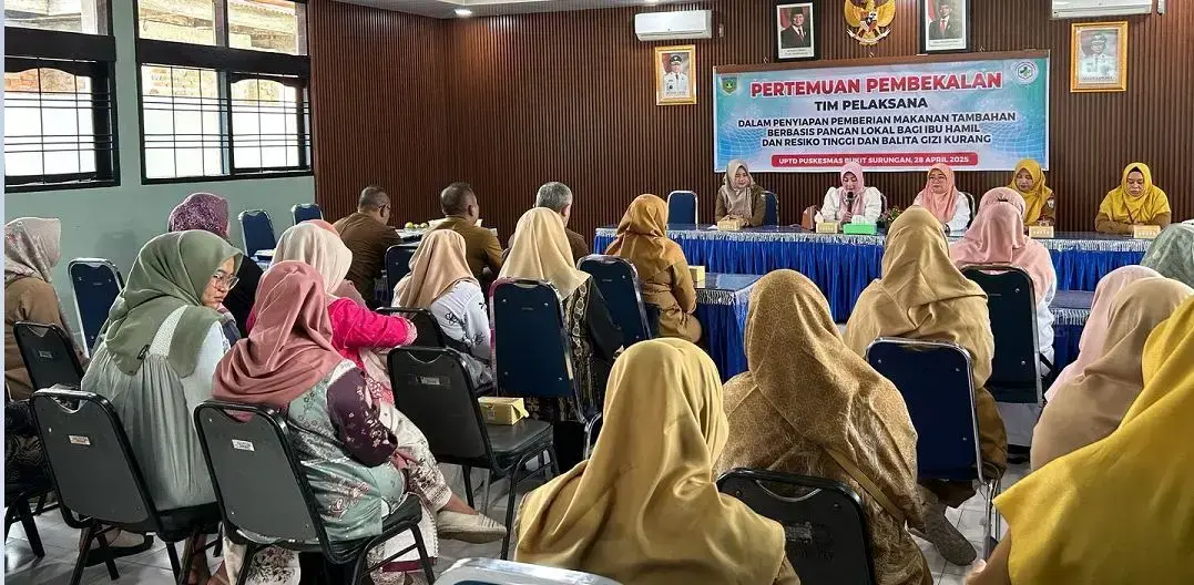 PADANG PANJANG, METRO–Latih peran kader dalam penuhi makanan berbasis pangan lokal bagi ibu hamil, UPTD Puskesmas Bukit Surungan (Busur) gelar kegiatan Pembekalan Tim Pelaksana dalam Penyiapan Pemberian Makanan Tambahan Berbasis Pangan Lokal Bagi Ibu Hamil dan Risiko Tinggi dan Balita Kurang Gizi.
