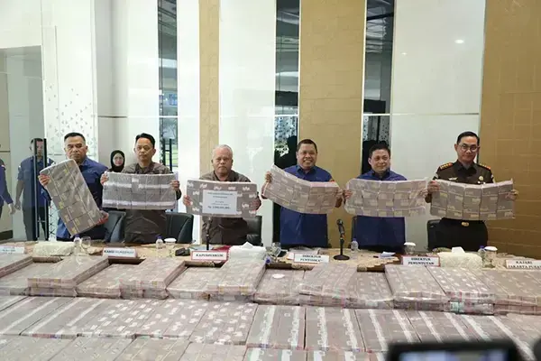 JAKARTA, METRO–Jaksa Penuntut Umum (JPU) pada Jaksa Agung Muda Bidang Tindak Pidana Khusus (JAM Pidsus) Kejaksaan Agung (Kejagung) menyita uang tunai sebanyak Rp 479.175.079.148 dalam kasus Tindak Pidana Pencucian Uang (TPPU) Duta Palma. Pada Kamis (8/5) mereka menunjukkan uang tunai ratusan miliar itu bertumpuk-tumpuk. Semuanya diduga hasil tindak kejahatan.