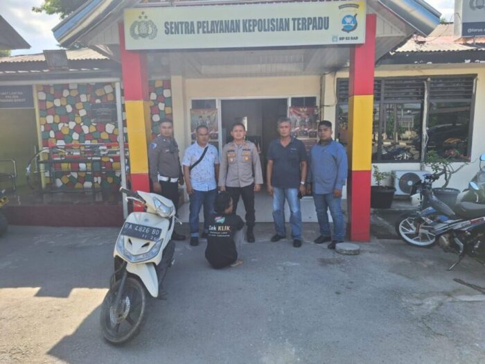 PADANG, METRO–Seorang pria yang terlibat kasus pencurian sepeda motor diringkus Tim Opsnal Unit Reskrim Polsek Padang Barat di di Jalan Seberang Penggalangan, RT 005 RW 003, Kelurahan Batang Arau, Kecamatan Padang Selatan, Kota Padang, Kamis (22/5).