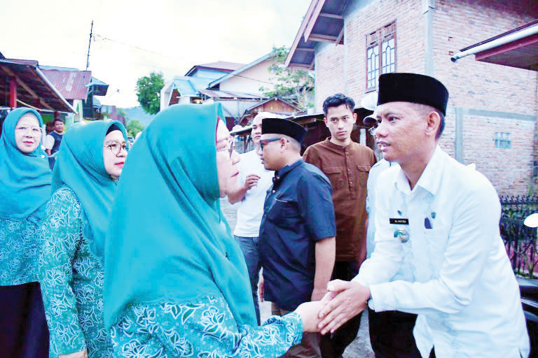 AGAM, METRO–Ketua Tim Penggerak PKK Kabupaten Agam, Ny. Merry Benni Warlis, menyampaikan rasa duka cita yang mendalam atas wa­fatnya orang tua dari Camat Tanjung Raya, Al Hafidz SSTP.
