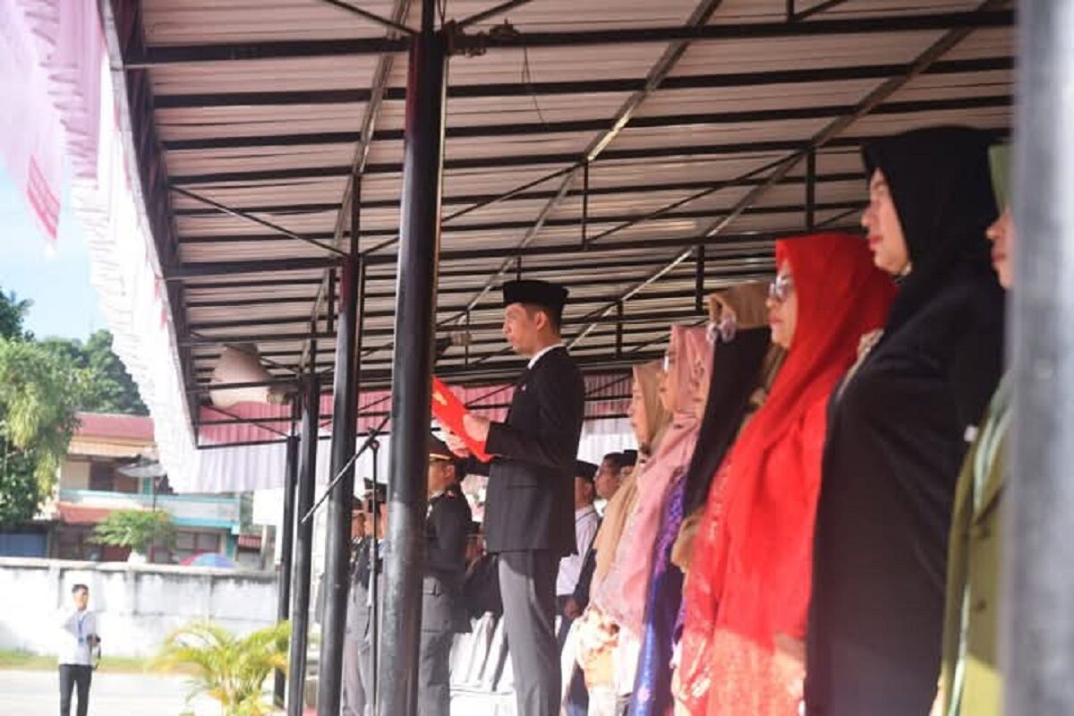 PERINGATAN HARLAH PANCASILA— Wali Kota Sawahlunto, Riyanda Putra, membacakan pidato resmi dari Kepala Badan Pembinaan Ideologi Pancasila (BPIP), Senin (2/6).