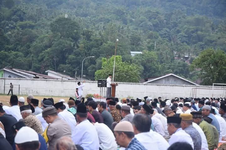 “Suasana shalat berlangsung khidmat dan tertib. Bertindak sebagai khatib, Ketua MUI Kota Sawahlunto, Ustadz Fadlih Rifenta, menyampaikan pesan moral dan spiritual tentang pentingnya meneladani keteguhan iman Nabi Ibrahim dan keikhlasan Nabi Ismail,” tuitur Paimin.