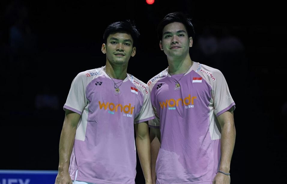 PASANGAN GANDA PUTRA— Shohibul Fikri/Daniel Marthin siap berjuan di semifinal Swiss Open 2025.