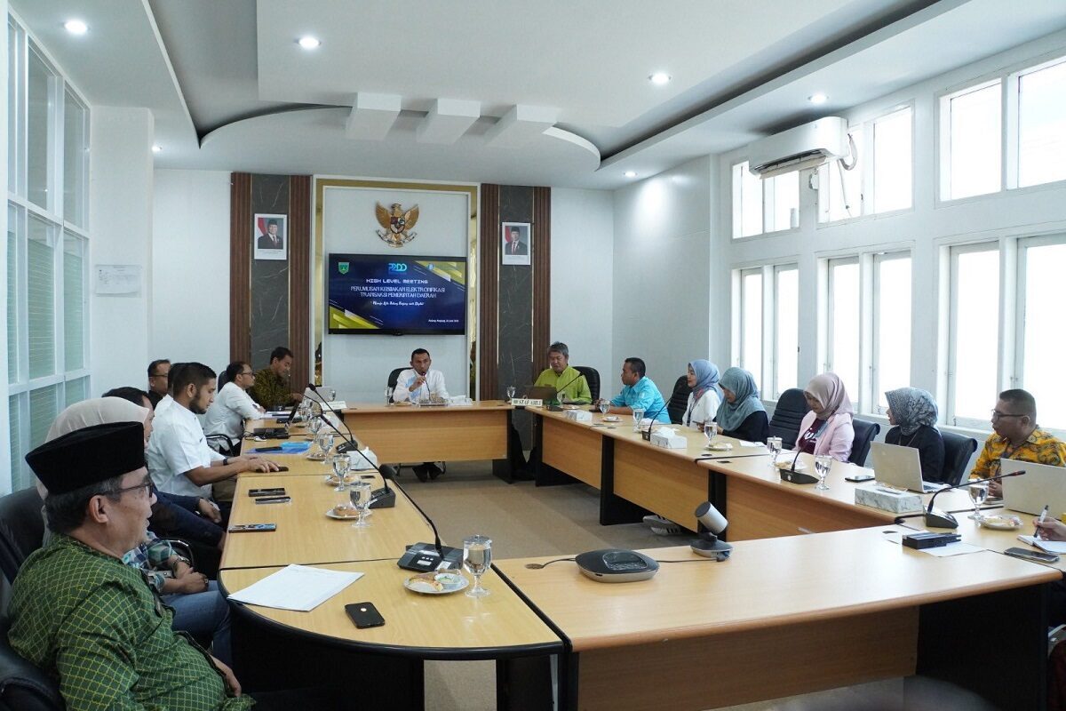 HIGH LEVEL MEETING— Wawako Padangpanjang saat membuka High Level Meeting HLM Tim Percepatan dan Perluasan Digitalisasi Daerah (TP2DD) Kota Padang Panjang, Jumat (20/6) , di ruang VIP Balai Kota.