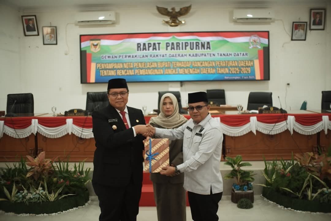 TANAHDATAR, METRO –DPRD Tanah Datar menggelar Rapat Paripurna Penyampaian Nota Penjelasan Bupati terhadap Rencana Peraturan Daerah (Ranperda) tentang RPJMD Tahun 2025-2029, Senin (7/7) di ruang sidang DPRD.