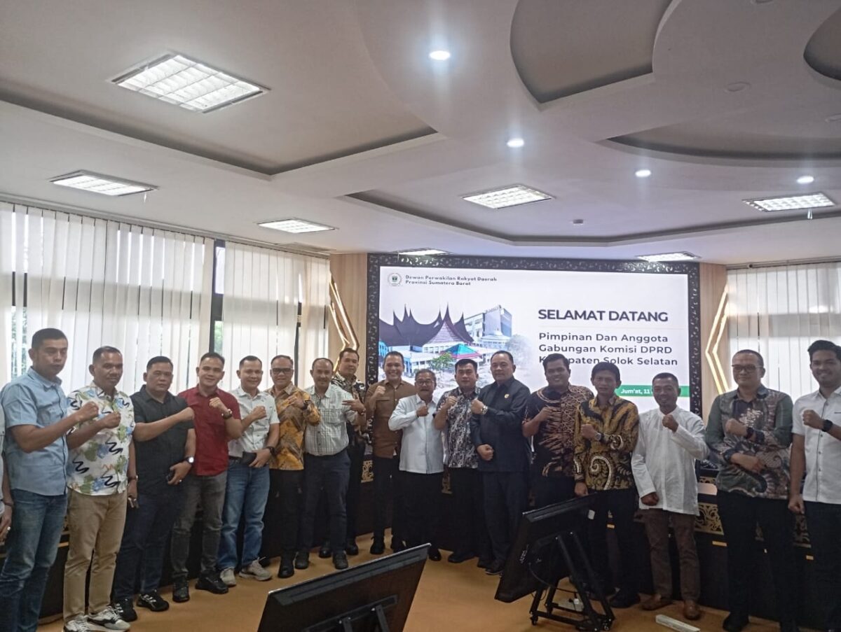 PADANG, METRO–Pimpinan dan anggota Dewan Perwakilan Rakyat Daerah (DPRD) Kabupaten Solok Selatan melakukan kunjungan kerja ke DPRD Provinsi Sumatera Barat (Sumbar), Jumat (11/7).