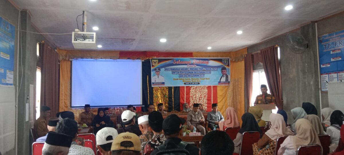 TANAHDATAR, METRO–Nagari Padang Laweh, Kecamatan Sungai Tarab mengadakan Musyawarah Nagari (Musnag) untuk penyusunan RKP tahun 2026 dan DU RKP tahun 2027, yang dibuka langsung oleh Ketua BPRN Padang Laweh Harnulis Dt Batuah, di Aula Kantor Nagari setempat, Senin (21/7).