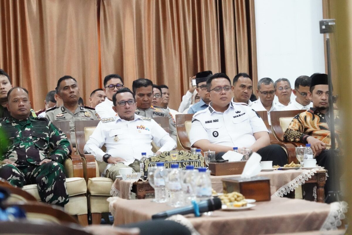LAUNCHING LOGO HUT RI— Bupati Eka Putra dan Wakil Bupati Ahmad Fadly beserta Forkopimda Tanah Datar, menyaksikan secara daring, launching logo peringatan Hari Ulang Tahun (HUT) Kemerdekaan RI ke 80 ldari Istana Kepresidenan, Jakarta Pusat, Rabu (23/7).