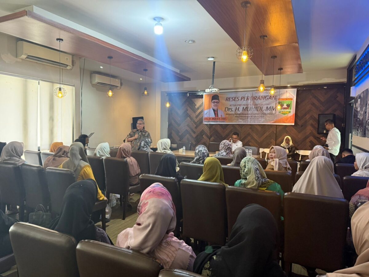 PADANG, METRO–Ketua DPRD Provinsi Sumatera Barat (Sumbar), Muhidi melaksanakan reses perseorangan masa persidangan ketiga tahun 2025 di daerah pemilihannya Kota Padang, dengan bertemu 100 orang pelaku UMKM dari empat kecamatan, Jumat (25/7).