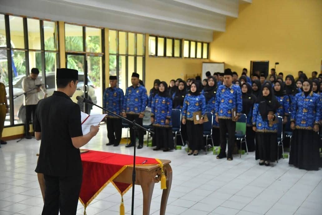 SAWAHLUNTO, METRO–Wali Kota Sawahlunto Riyanda Putra melantik dan mengambil sumpah jabatan 126 Pegawai Pemerintah dengan Perjanjian Kerja (PPPK) Formasi Tahun 2024 Tahap I, di Sanggar Kegiatan Belajar (SKB) Sawahlunto, Senin (28/7).
