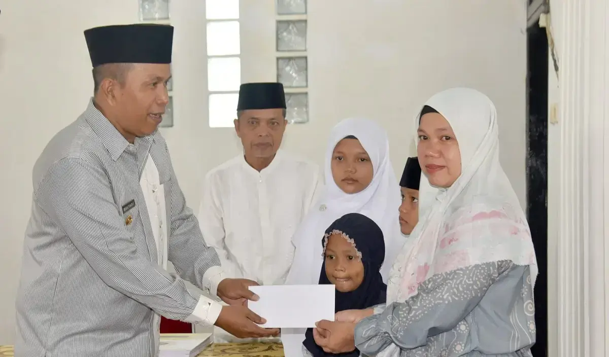 BANTUAN— Wawako Pariaman Mulyadi serahkan bantuan didampingi Ketua Baznas Pariaman saat kegiatan wirid bulanan ASN Pemko Pariaman.