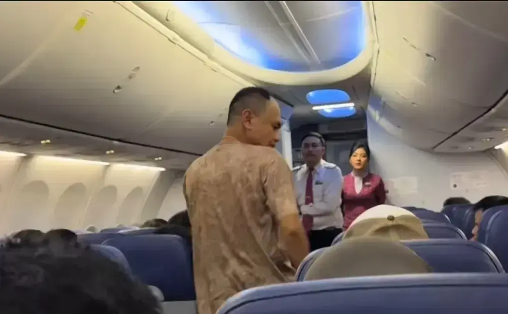 Dalam sebuah video di media sosial TikTok, penumpang laki-laki yang marah meminta seluruh petugas untuk turun dan menyampaikan bahwa ada bom di dalam pesawat.
