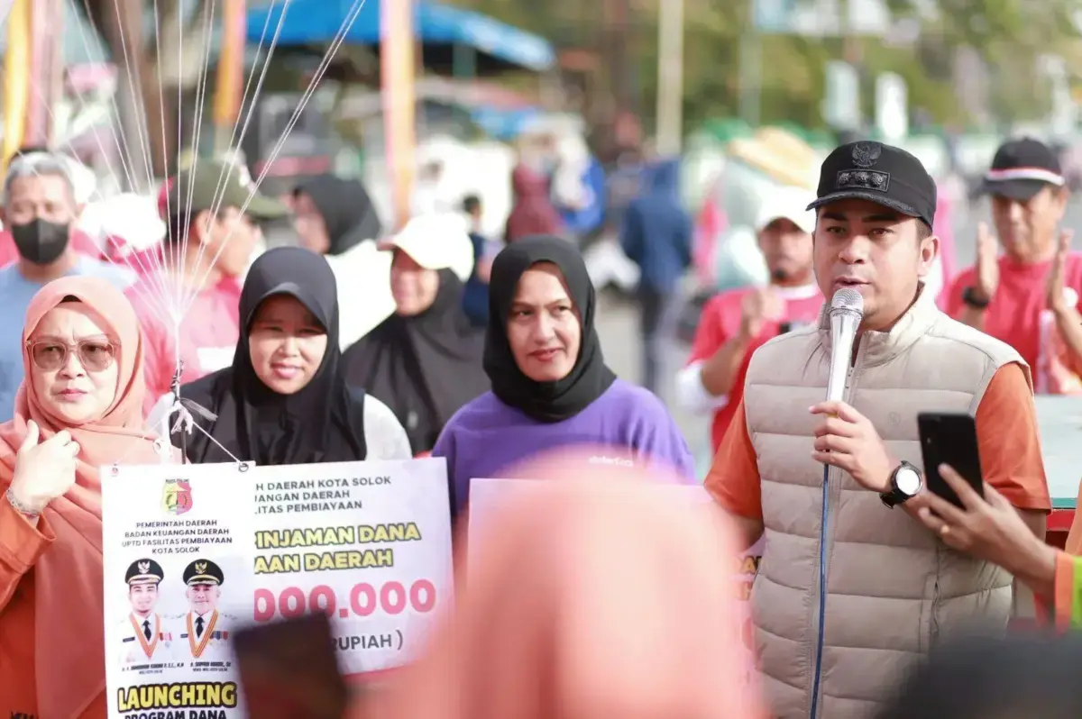 SOLOK, METRO–Wali Kota Solok, Dr. Ramadhani Kirana Putra secara resmi Membuka Kegiatan Launching Penyaluran Pinjaman Permodalan bagi UMKM Kota Solok yang diprakarsai oleh Badan Keuangan Daerah di Kawasan Car Free Day, Minggu (3/8). Pada kesempatan tersebut wako mengatakan bahwa UPTD sebagai unit pelaksana teknis yang berada di bawah Badan Keuangan Daerah, telah ditetapkan untuk melaksanakan Pola Pengelolaan Keuangan Badan Layanan Umum Daerah (PPK BLUD).