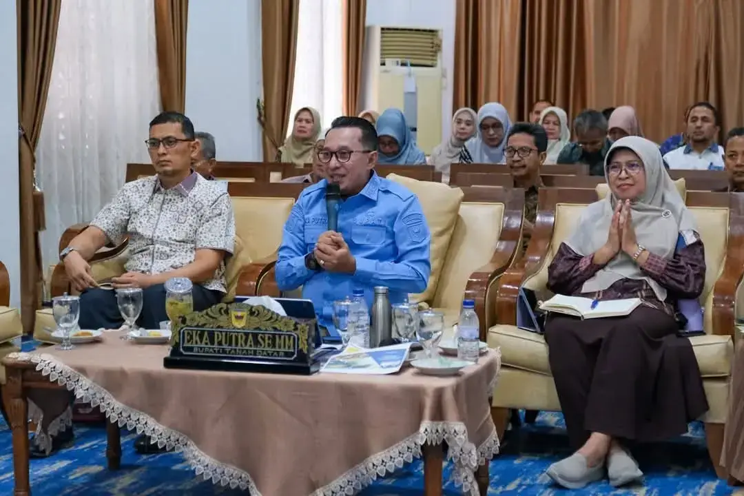 TANAHDATAR, METRO –Bupati Tanah Datar Eka Putra memaparkan Rencana Pembangunan Jangka Menengah Daerah (RPJMD) Tahun 2025 – 2030 kepada Minang Diaspora secara daring, Sabtu (2/8) di Indojilito Batusangkar. Bupati Eka Putra didampingi Sekda Abdurrahman Hadi, Assiten III Desi Trikorina, Kepala Bappedalitbang Adriyanti Rustam, kepala OPD, Kabag, Kabid, dan undangan lainnya, langsung didengar Minang Diaspora dari berbagai negara.