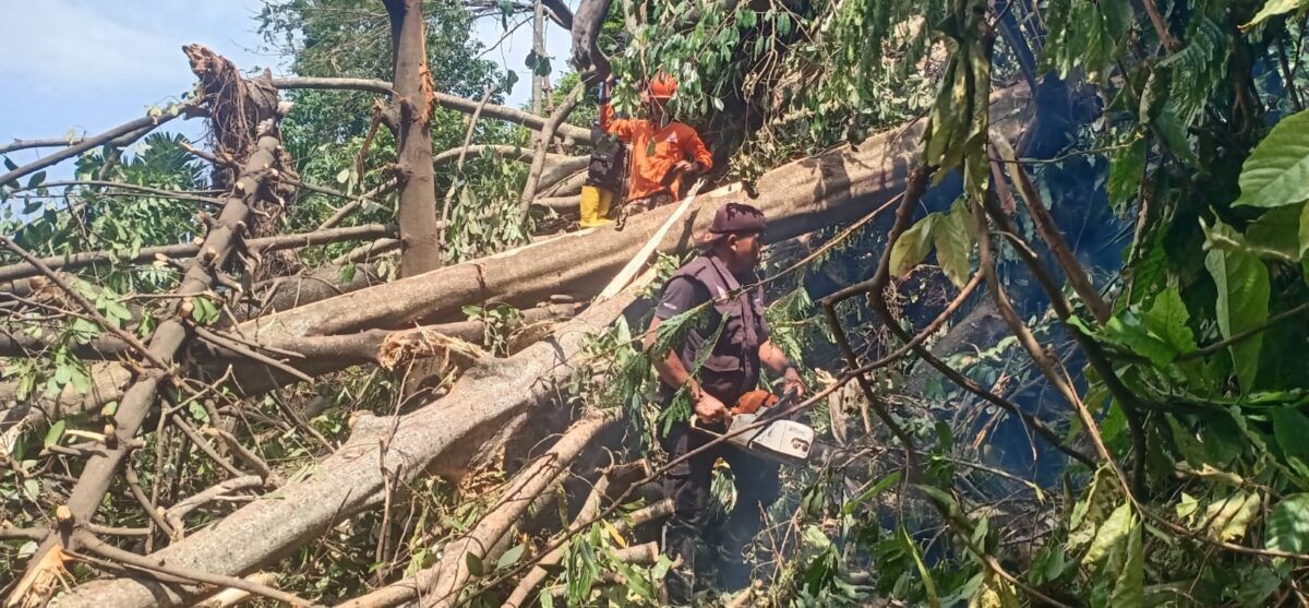 PADANG, METRO–Dipicu cuaca yang ekstrem, pohon beringin berukuran besar tumbang di kawasan Teluk Bayur, tepatnya di Jalan Bukit Air Manis, Kecamatan Padang Selatan pada minggu, (10/8) sekitar pukul 09.45 WIB.